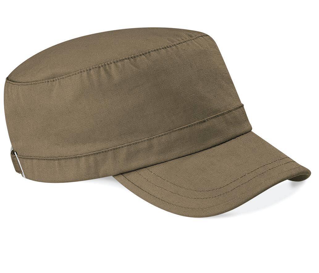 Pre-curved peak. Self-fabric strap with silver effect buckle and grommet.