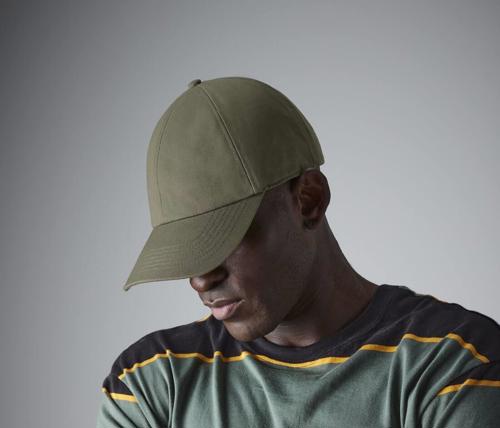 Mid profile 6 panel design. Structured front panel. TearAway label for ease of rebranding. Pre-curved peak. Self-fabric strap with tri-glide buckle.