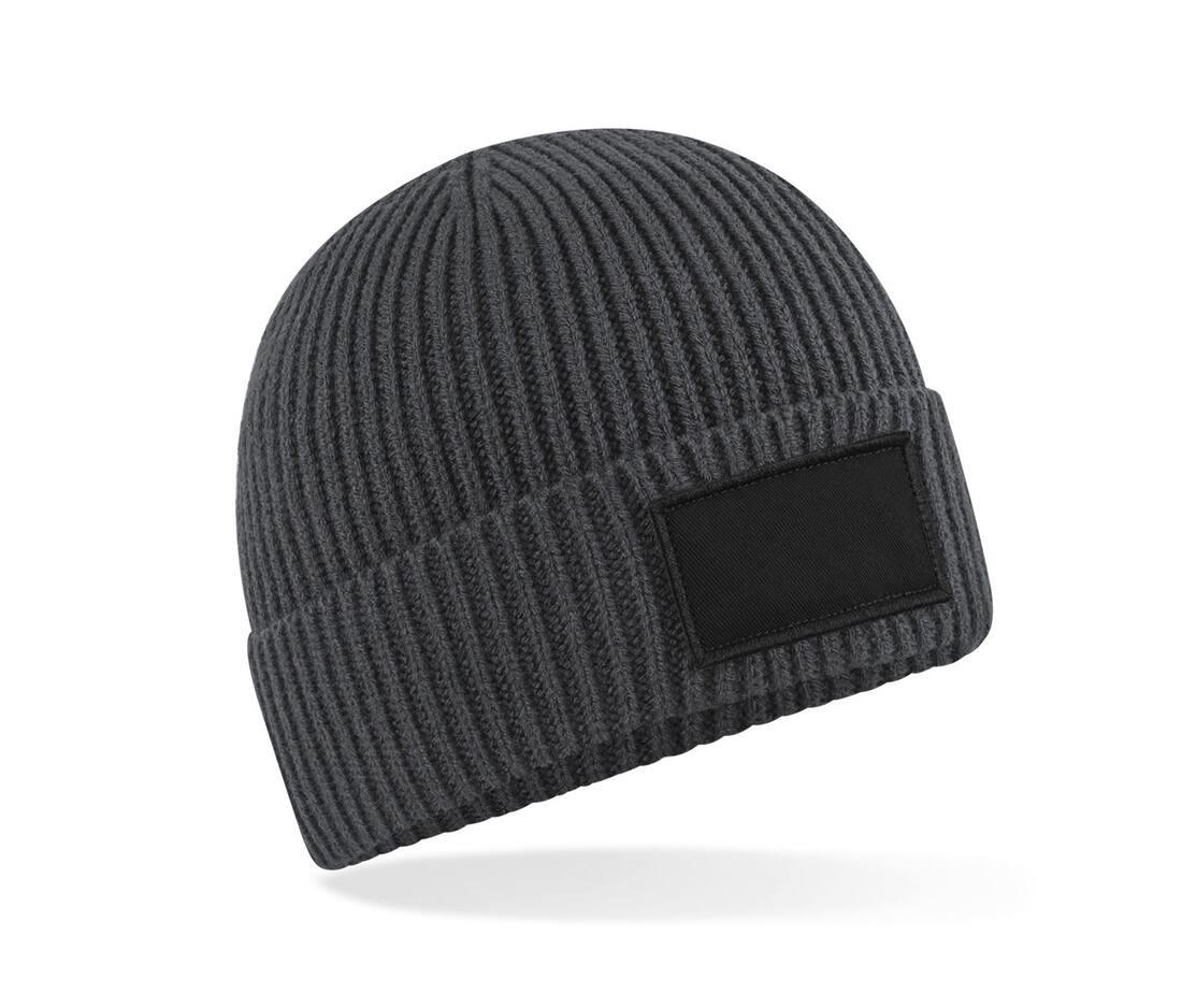Contains at least 50% recycled polyester. Recycled polyester made from 100% rPET, equivalent to approx. 1.5 post-consumer bottles. Ribbed knit. Single layer knit. Engineered crown for maximum comfort. Cotton twill patch for decoration. Cuffed design for optimal decoration. TearAway label for ease of rebranding.
