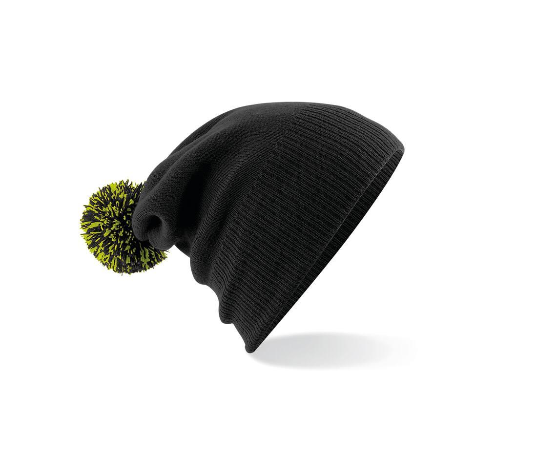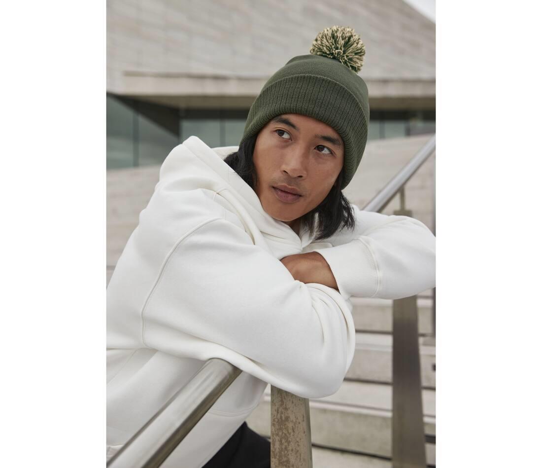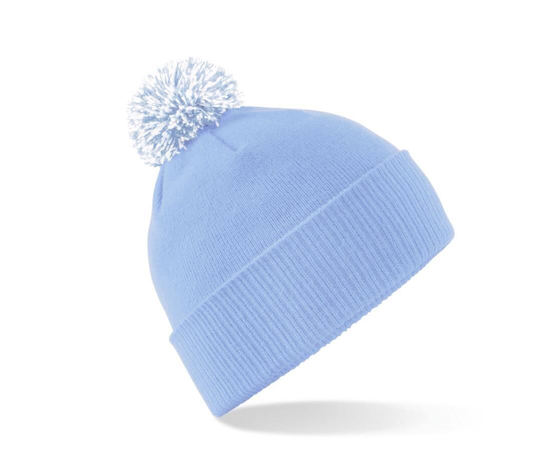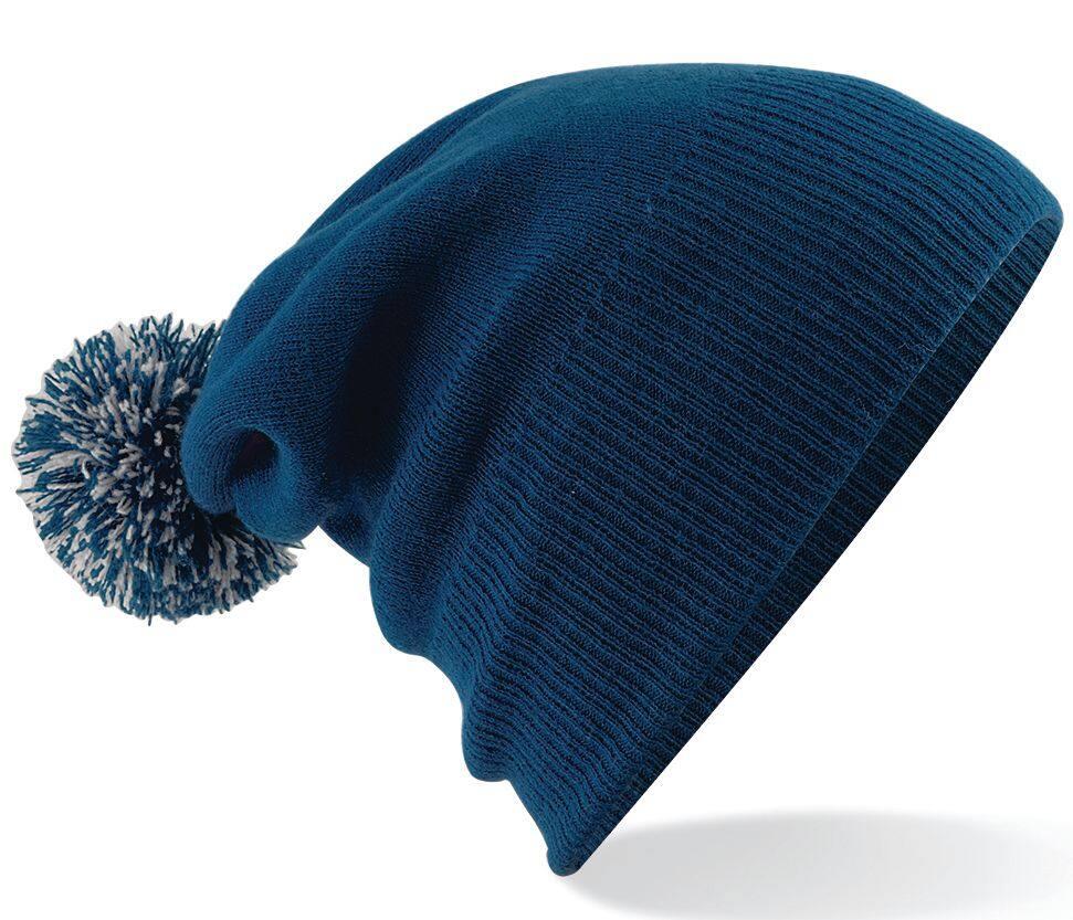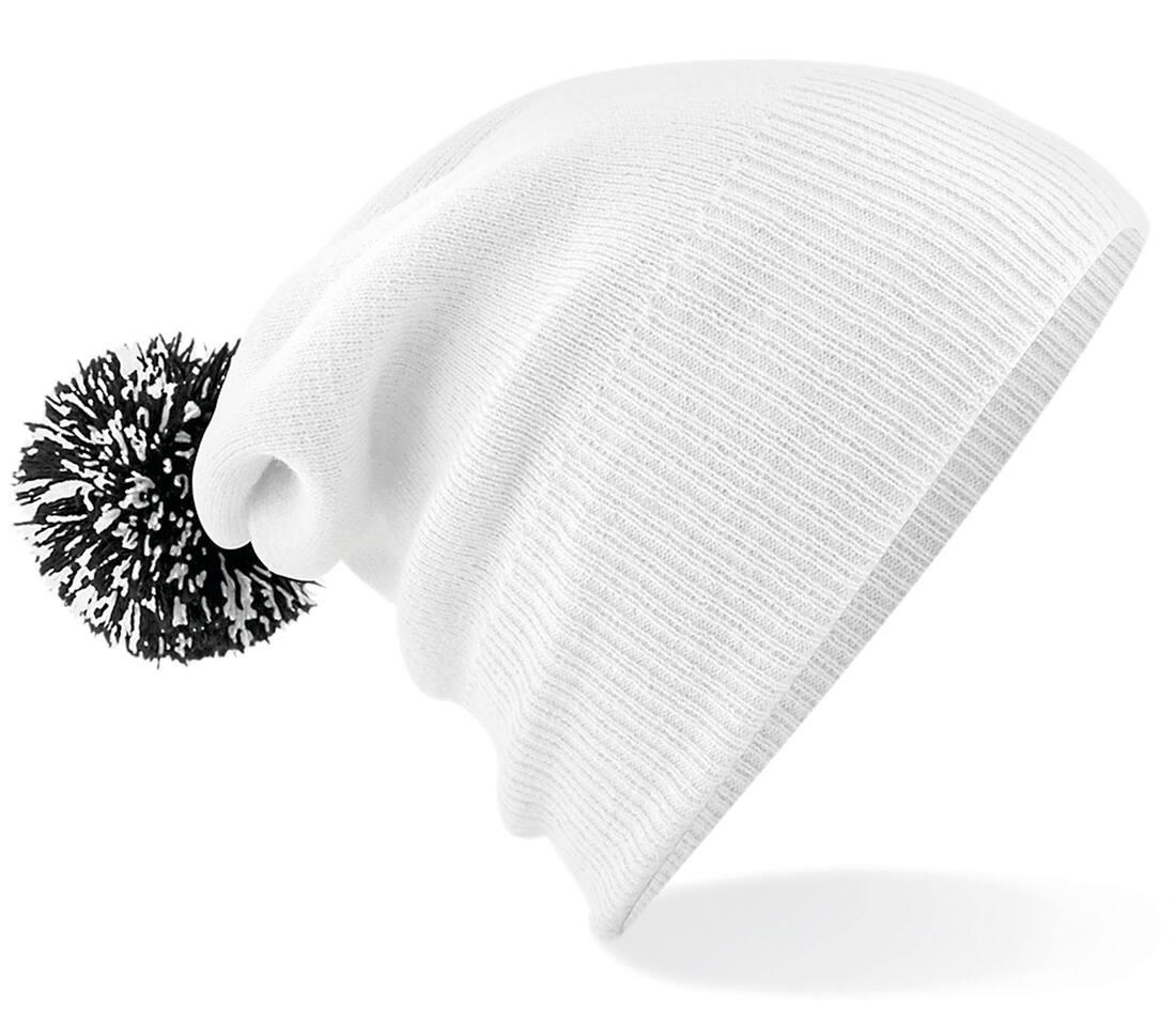 Double layer knit. Ribbed cuff. Dual style - Cuffed or slouch. Two-tone pom pom. TearAway label for ease of rebranding. Also available in junior size.