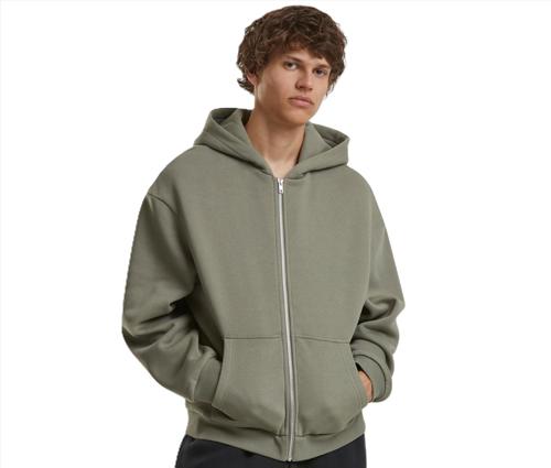 Oversized fit. Drop Shoulders. Kangaroo pocket. Ribbed cuff on seam and sleeve seam. Metal zip. Brushed inner.
