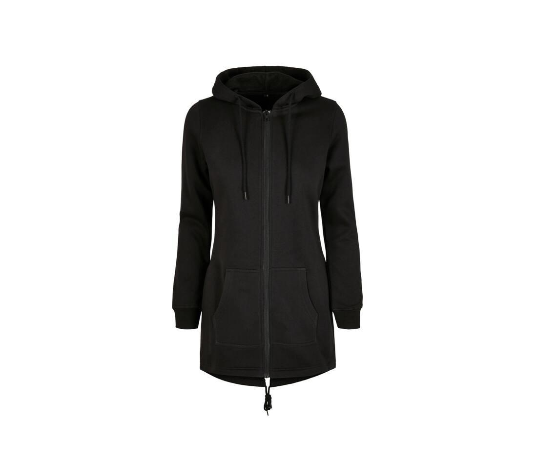 The Ladies Sweat Parka gives a casual touch to any outfit. The jacket is made from a soft cotton blend and can be adjusted using an internal drawstring. You’ll be sure to pick it on days when you just want to be comfortable. A hood and spacious kangaroo pocket top off the It piece. The crescent-shaped cutout on the back can be customized with a print.
