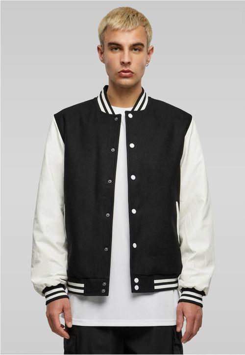 Side pockets. Knitted collar, cuffs and waistband. Press stud fastening. Fake leather sleeves. Neutral sizelabel without branding.