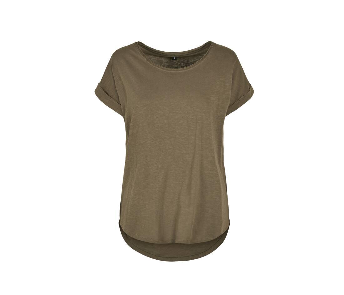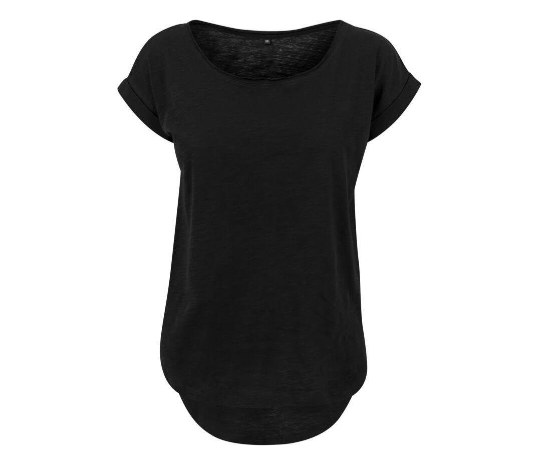 Crewneck slub t-shirt. Oversized sleeves. Fashionable shaped hem. Extra long fit on the back. Neutral sizelabel without branding. Set in sleeves.