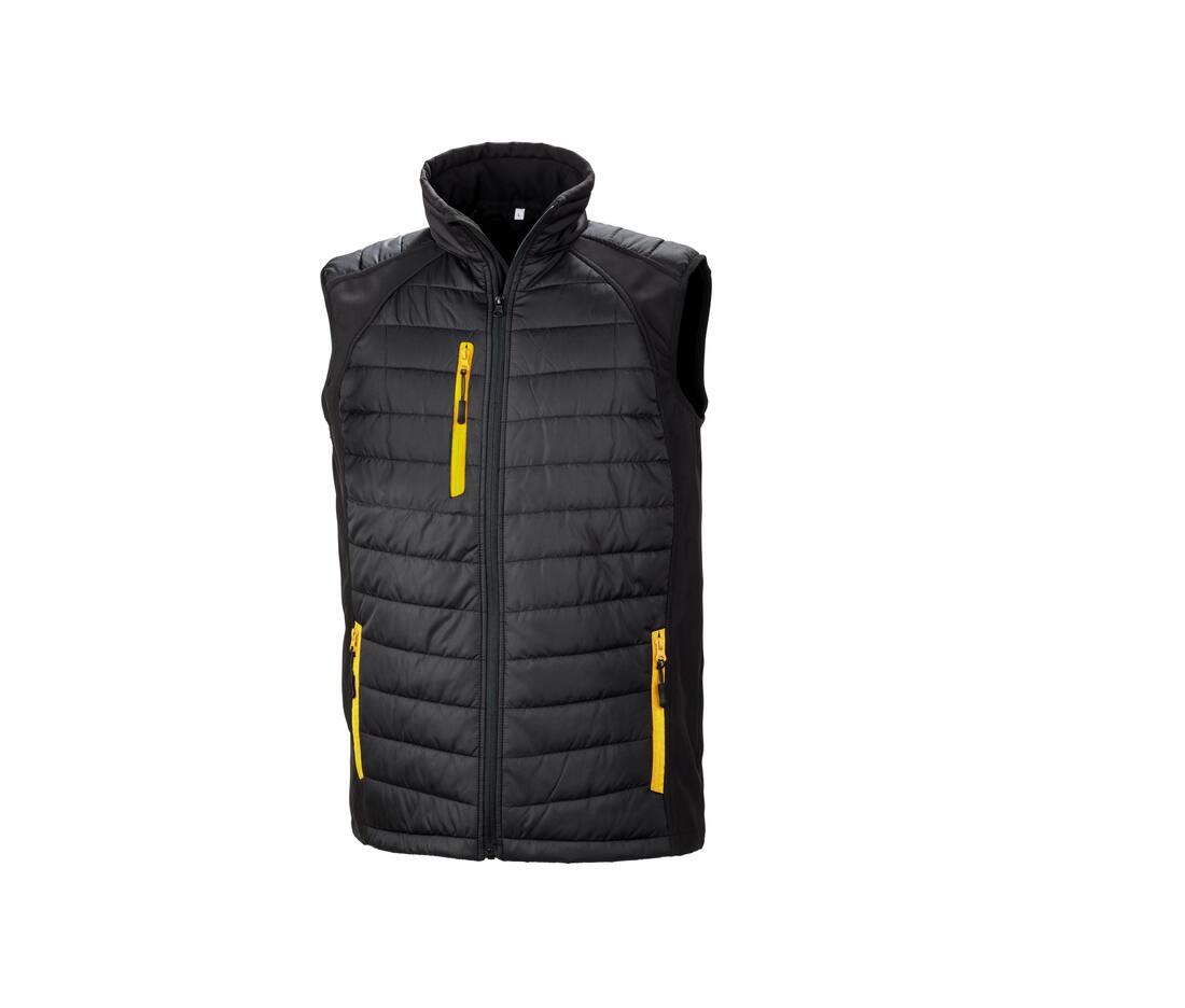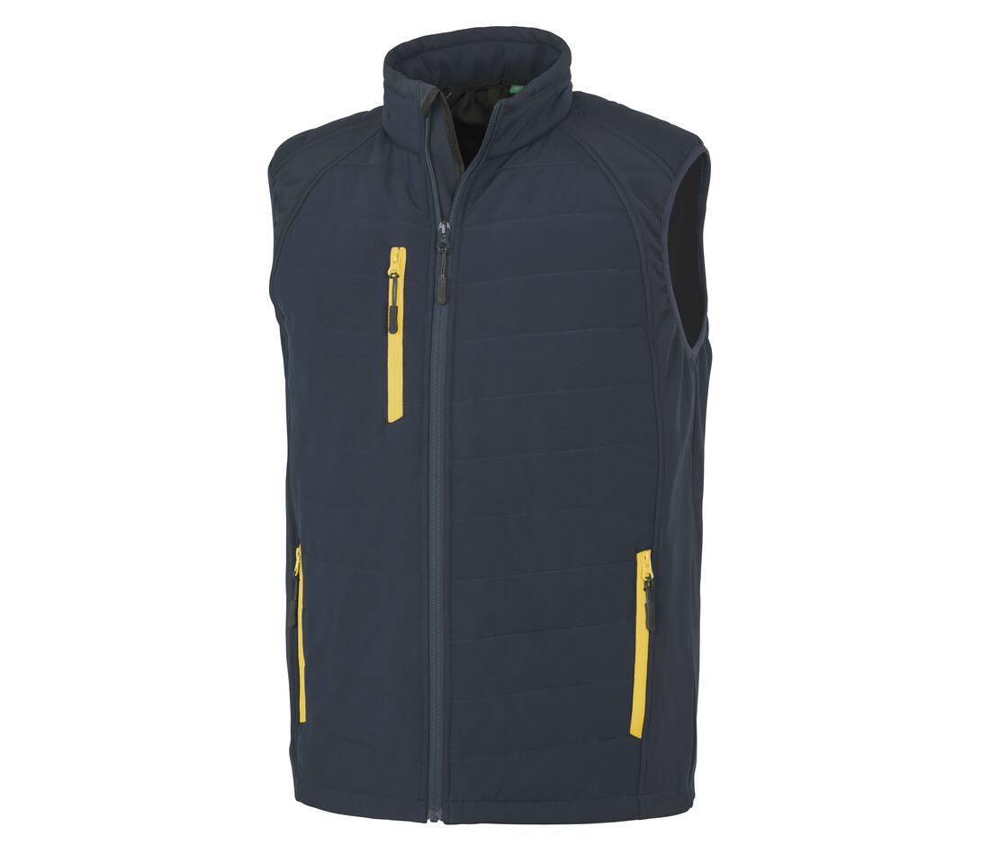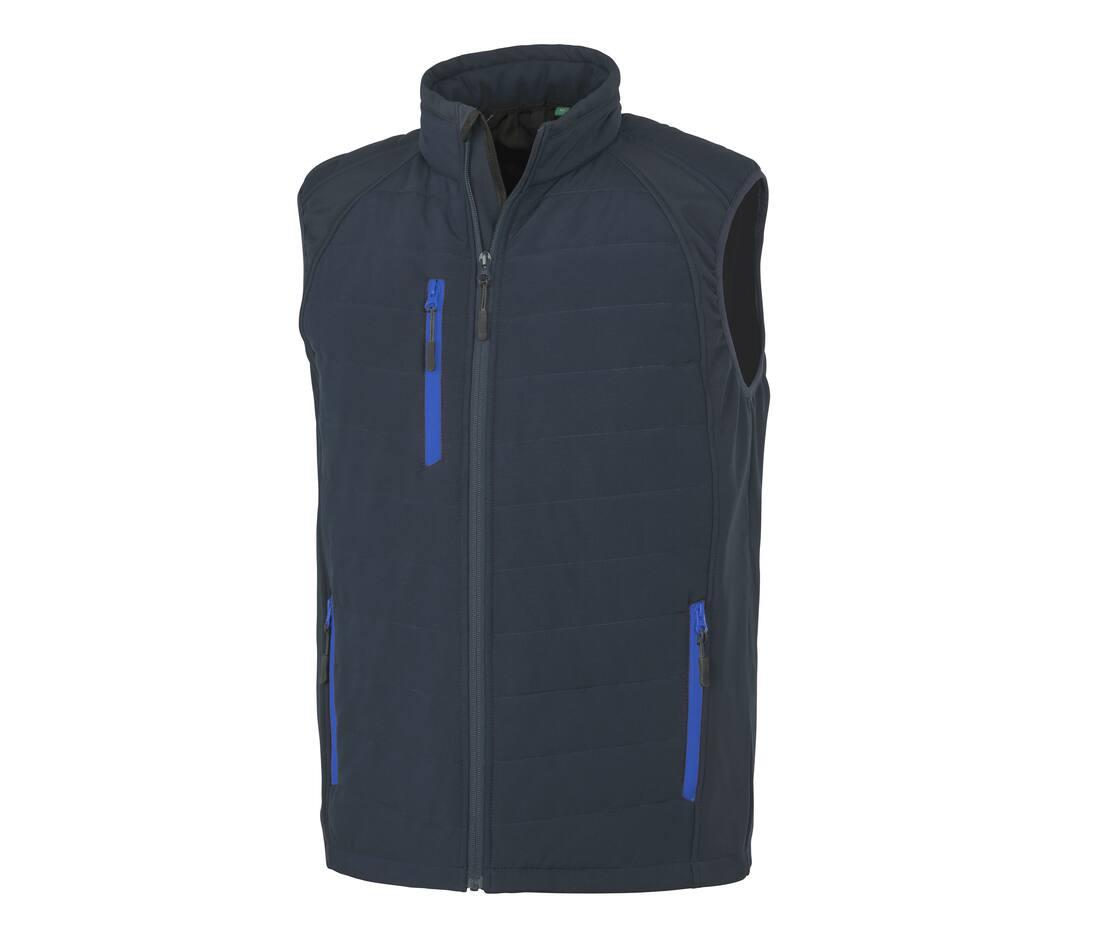 Showerproof, windproof & breathable. YKK front zip with chin guard. Contrast colour pocket zips. Stand-up padded collar. Black zip pulls. Padded body. Hang loop. REPREVE® performance recycled padding using environmental-friendly materials made from recycled plastic bottles and post-industrial waste offering a sustainable equivalent to conventional yarns. TOPGREEN® environmental-friendly softshell polyester printable sleeves. Ready to brand. Made of 9 recycled bottles.