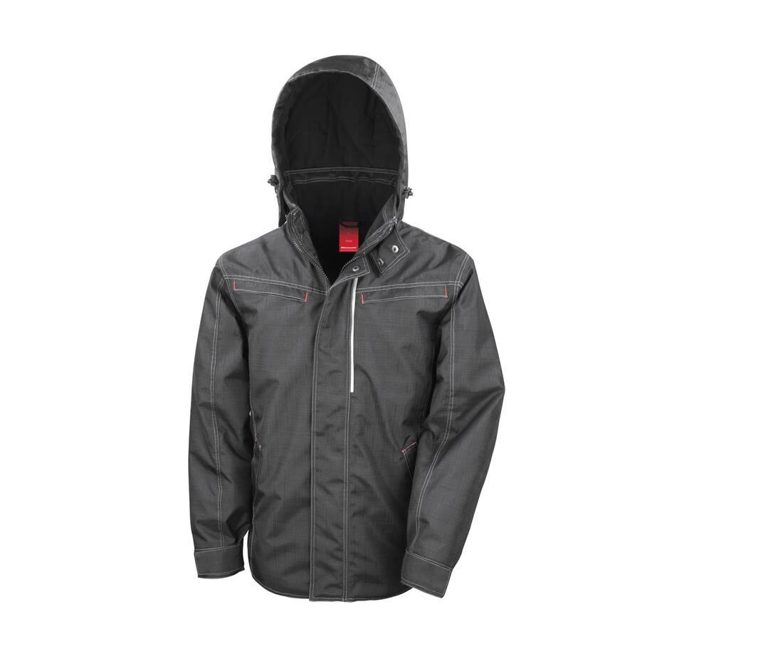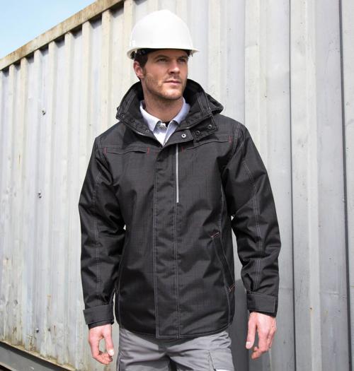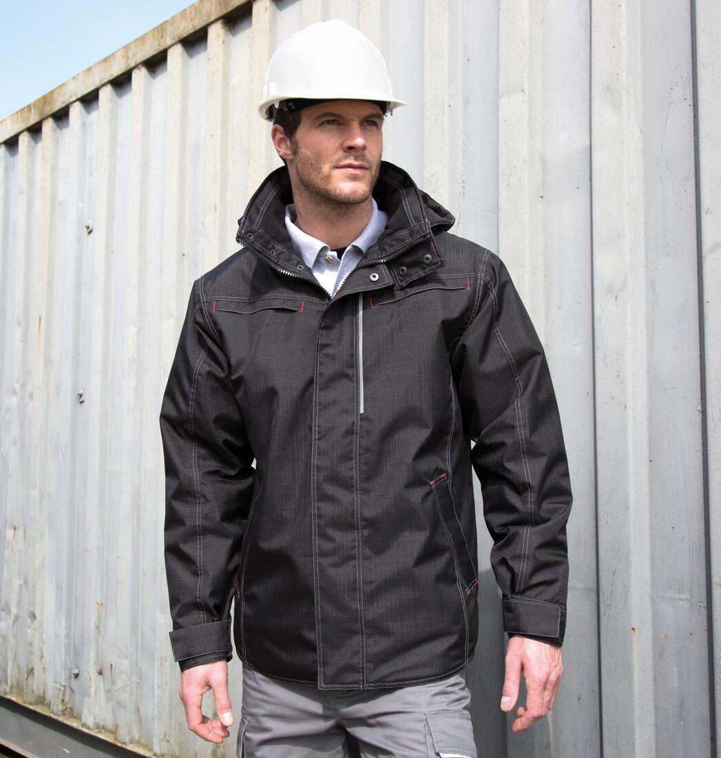 Heavy duty 2-way zip with interchangeable colour zip pulls. Contrast twin needle stitching and bar tacks. Fashion shaped longer back panel. 4 outer & 1 inner zipped pockets. Quilted Polartherm ™ fleece lined. Stud closing storm flap. D-ring in LBP pocket. Removable hood. Fully taped seams. Reflective detailing. Adjustable hem. Stand up collar.