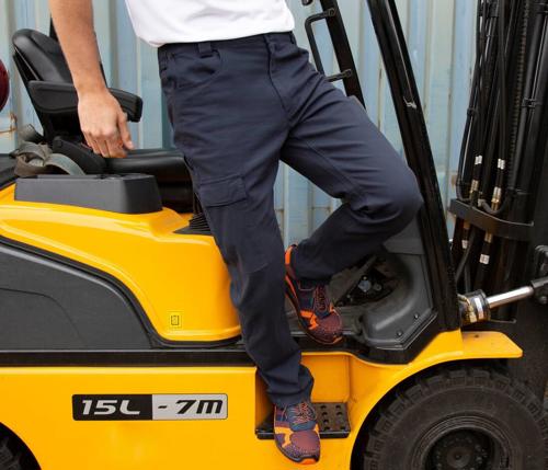 Cargo multi-use front pocket with tear release close. Expandable waistband with belt loops. YKK zip with button fastening. Critical stress point bar tacking. Twin needle stitched seams. Western style side pockets. Rear pocket. Slim leg. Windproof. Comfort fit. Durable & hardwearing finish.