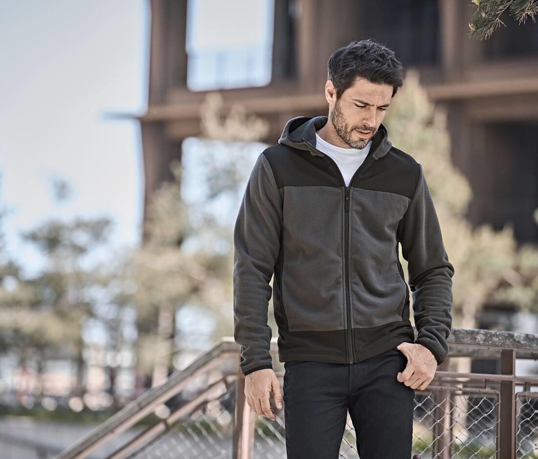 Hood. SBS zipper. Reinforced panels. Adjustable hem with drawstring/stopper. Elastic banding at sleeve hem. 2 open front pockets. Inner pocket.