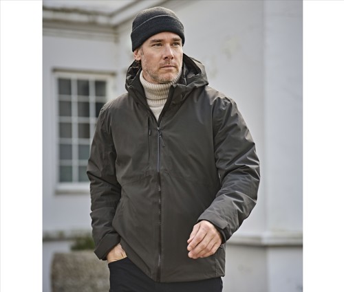 4-way stretch fabric. DuPont™ padding. Removable hood with adjustable string. SBS zippers. Taped seams. Adjustable hem with drawstring/stopper. Two hidden front pockets with warm lining. Chest pocket and inner pocket. Sleeves with hidden elastic storm cuff.