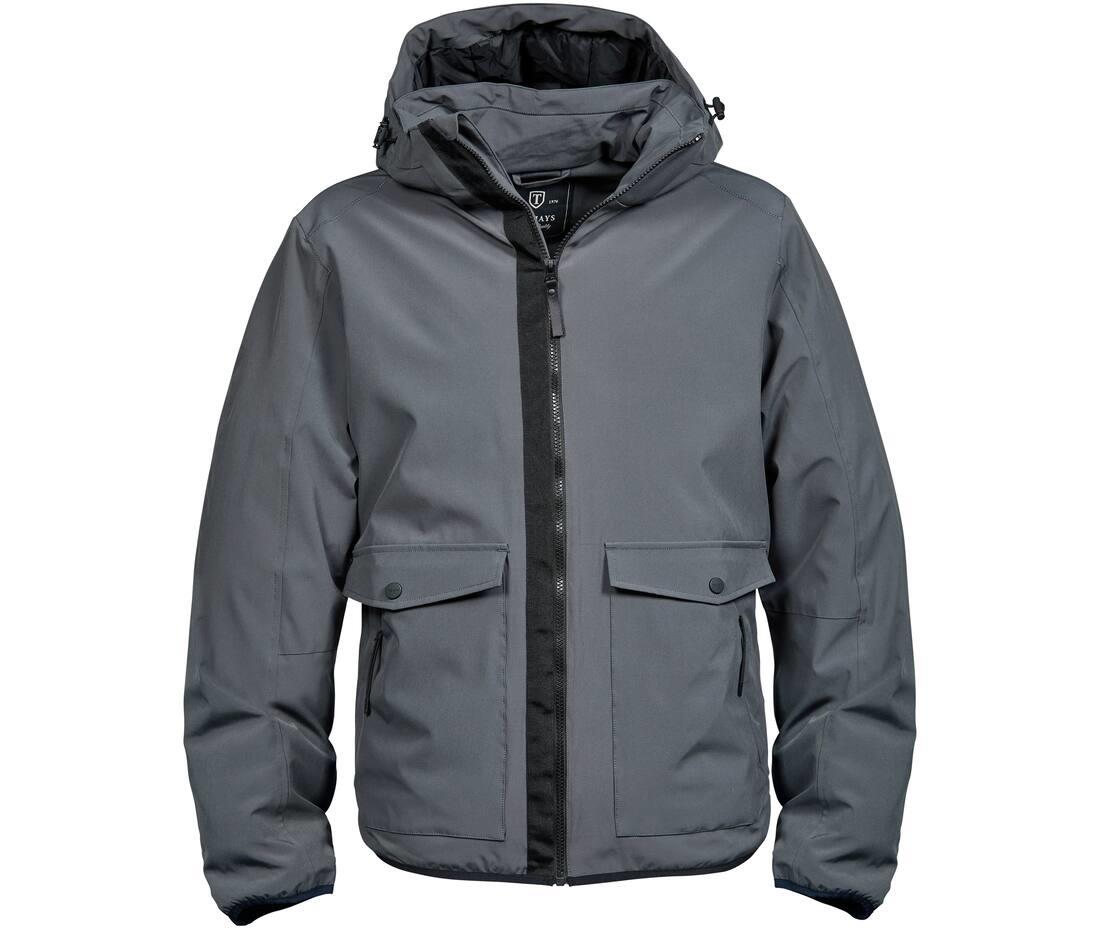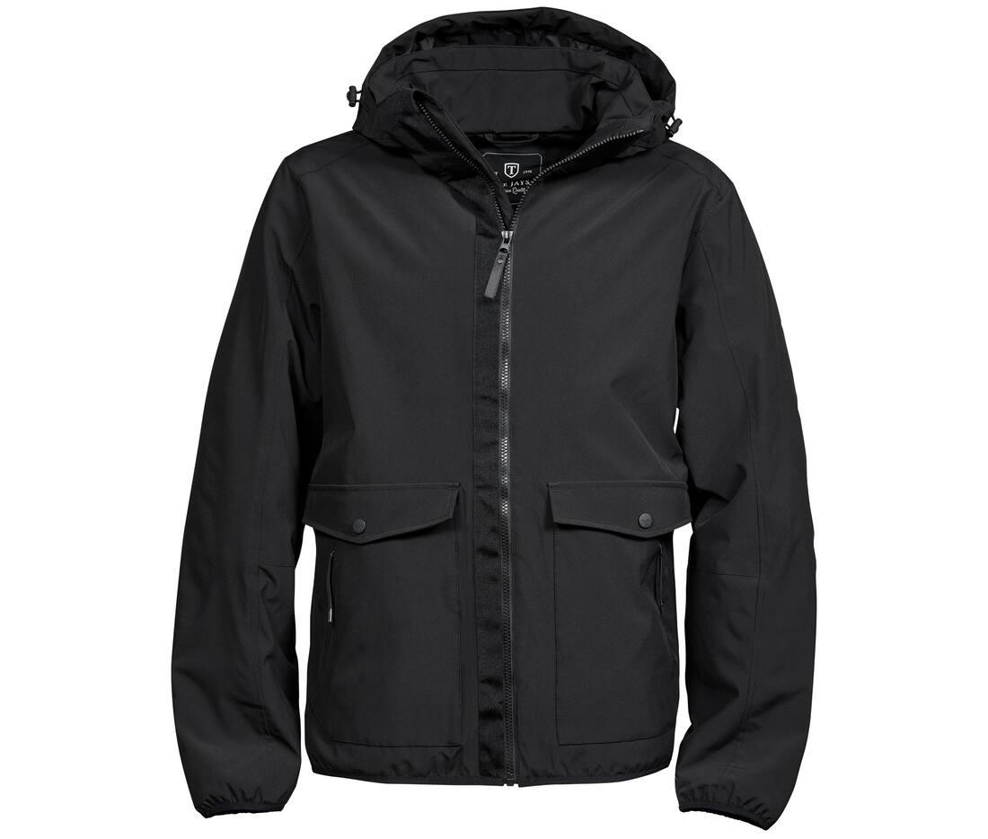 Large zip jacket. Detachable hood with drawstring. Water repellent. Good isolation with high quality DuPont™ padding. Chin guard. Two front pockets with double opening. Elasticated hem and cuffs. Inner pocket with snap button.
