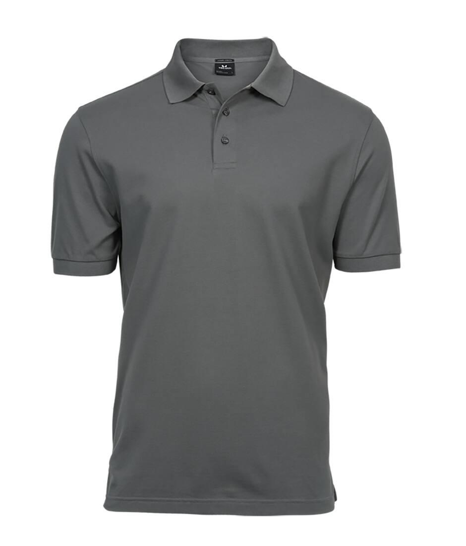 Mini piqué knit. Shaped fit. Flat knit collar with elastane. Preshrunk. Neck tape. Placket 3 tone-on-tone buttons.