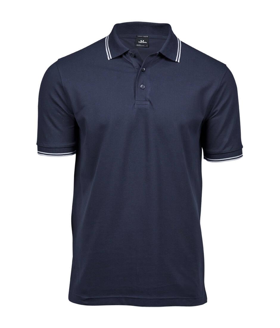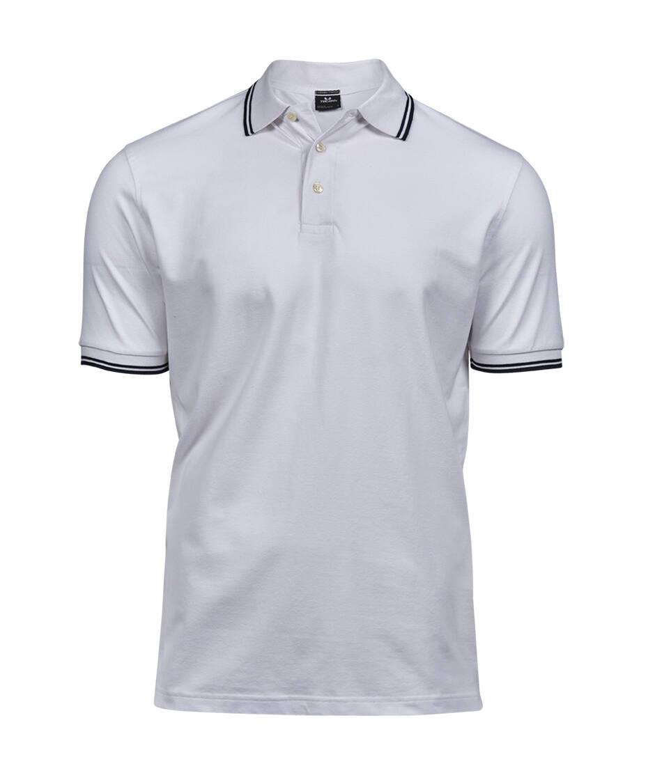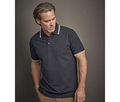 Mini piqué knit. Striped collar and cuffs. Flat knit collar with elastane. Preshrunk. Neck tape. Placket 3 tone-on-tone buttons.