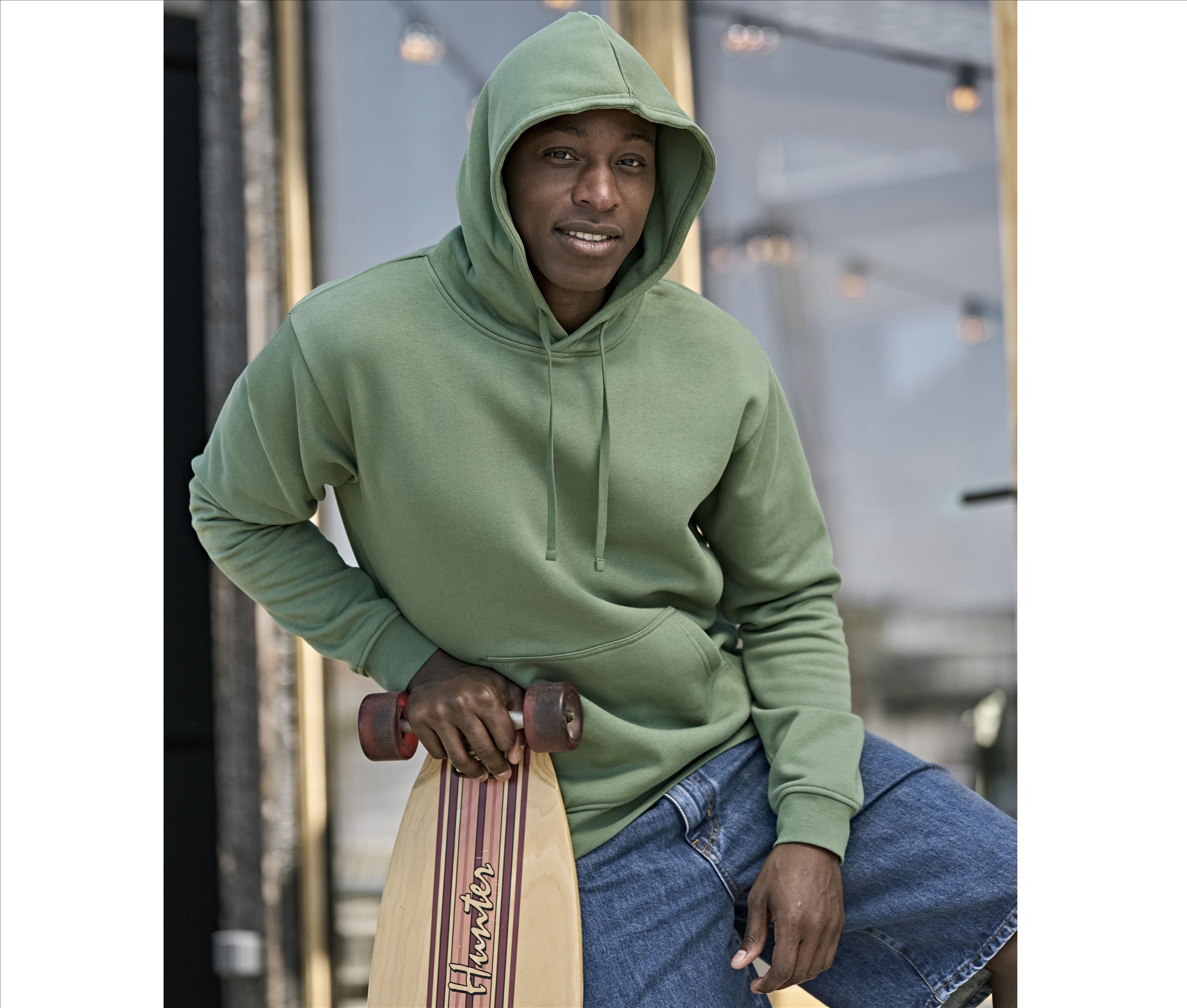 Relaxed fit. Ribs with elastane. Brushed inside. Half moon for personalized branding. Double dyed. SBS zipper.