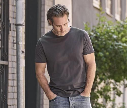 Tailored fit: fitted around shoulders and sleeves, looser body. Shoulder to shoulder neck tape. Double stitched. Preshrunk. Enzyme washed.
