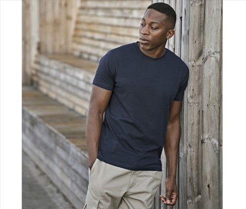 Regular fit. Shoulder-to-shoulder neck tape in self-fabric. Two-layer collar with elastane. Set-in sleeves. Double preshrunk cotton.