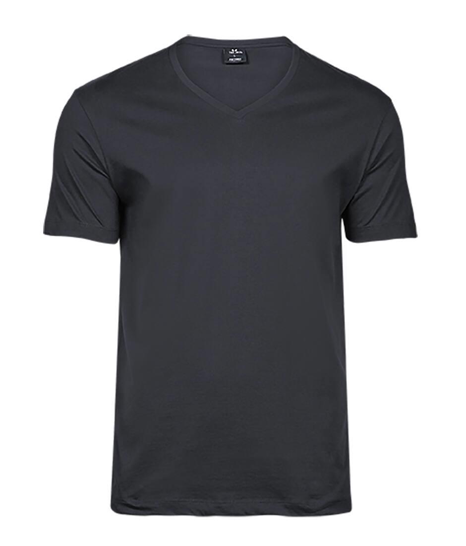 Shaped fit. V-neck. 2-layer collar with elastane. Shoulder to shoulder neck tape. Preshrunk cotton. Double stitches. Washable at 60°.